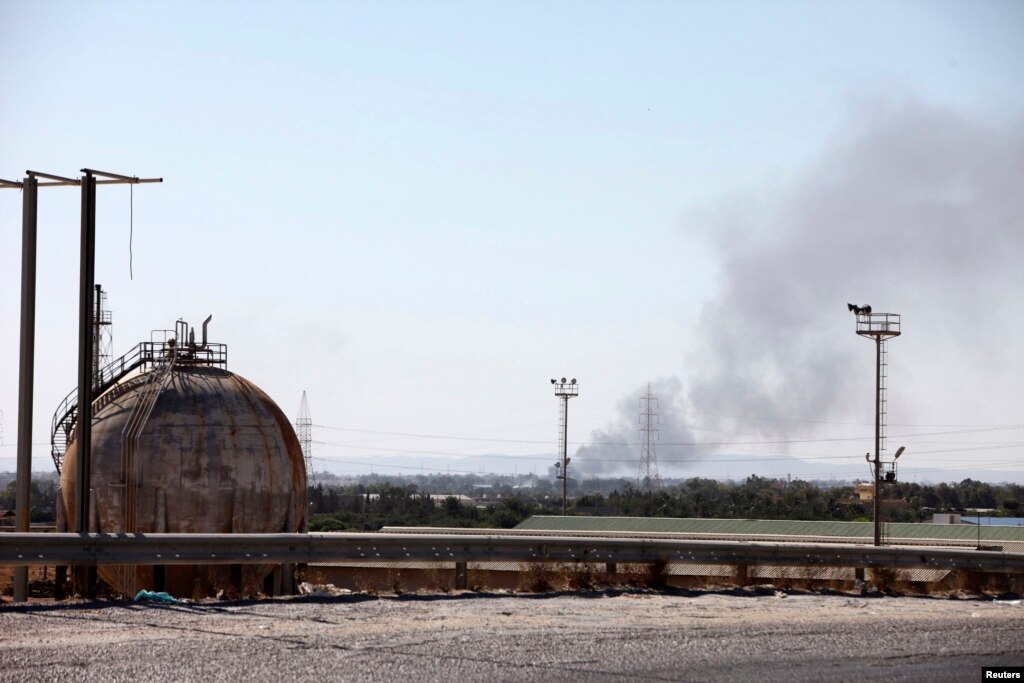 Khói bốc lên sau cuộc giao tranh ác liệt giữa các lực lượng dân quân gần phi trường Tripoli, 23/7/2014.